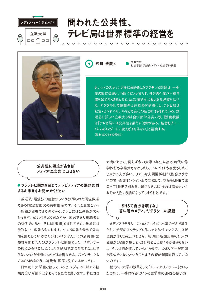 [立教大学]社会学部 学部長 メディア社会学科教授 砂川 浩慶氏