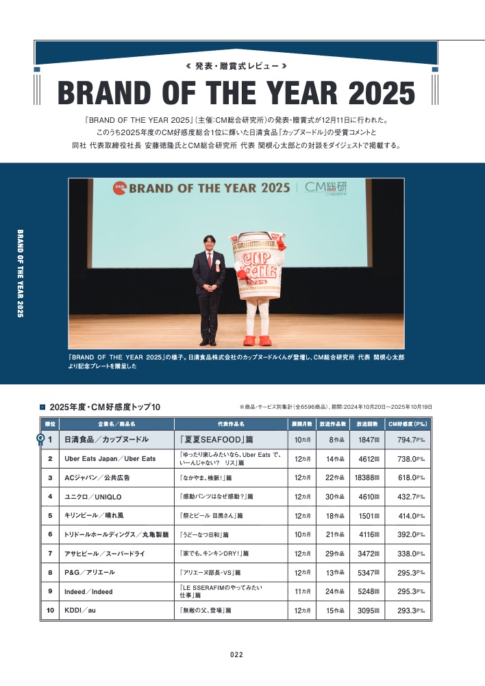 1986年4月創刊。CM総合研究所が消費者3000人に実施する「CM好感度調査」をもとに、CMに関するさまざまな情報を紹介する専門誌です。CM好感度ランキングや業種別のヒットCM分析をはじめ、話題の広告アワードや新CM情報といった広告業界の最新トピックスを掲載。また宣伝担当者やクリエイターへのインタビュー、広告の効果検証に関するレポートなど、多彩なテーマで広告コミュニケーション活動に役立つ記事をお届けします。